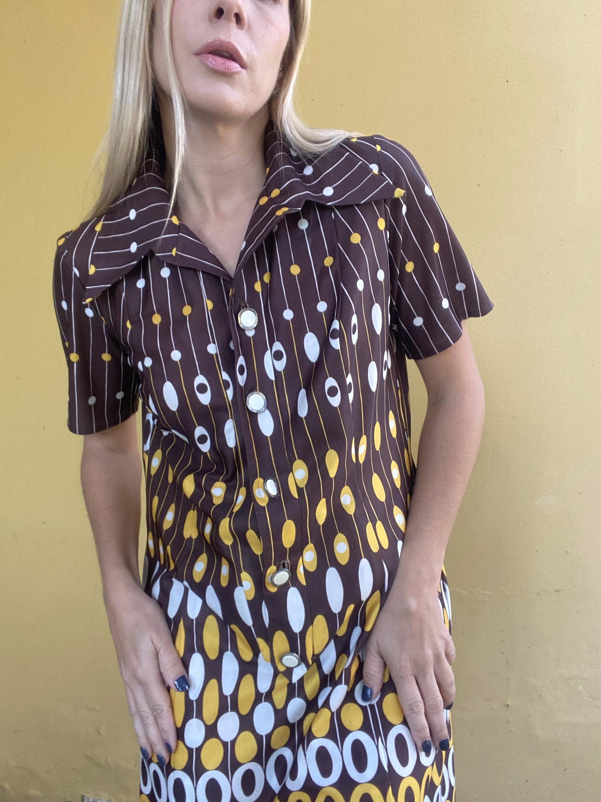 Brown/ dress with white and yellow patterns